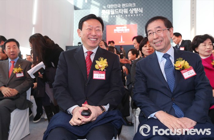 | △ 웃으며 대화나누는 박원순-신동빈 |