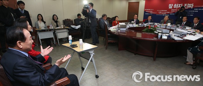 (서울=포커스뉴스) 서청원 새누리당 최고위원(경기 화성갑)이 7일 오후 서울 여의도 당사에서 열린 공천 면접에서경쟁자인 리은경 예비후보와 면접을 보고 있다.