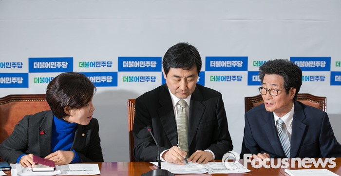끝으로 "첫 여성 대통령인 박근혜 대통령은 여성이 행복해야 대한민국이 행복하다는 것을 알아야 한다"고 덧붙였다.더불어민주당 한정애(왼쪽) 의원은 8일 여성의 날을 맞아 한국 여성 노동자의 현실에 대해 지적하며 개선을 요구했다. 사진은 한 의원이 이종걸(가운데) 더불어민주당 원내대표와 이목희(오른쪽) 정책위의장과 함께 대화하고 있는 모습이다. 2016.01.28 박동욱 기자