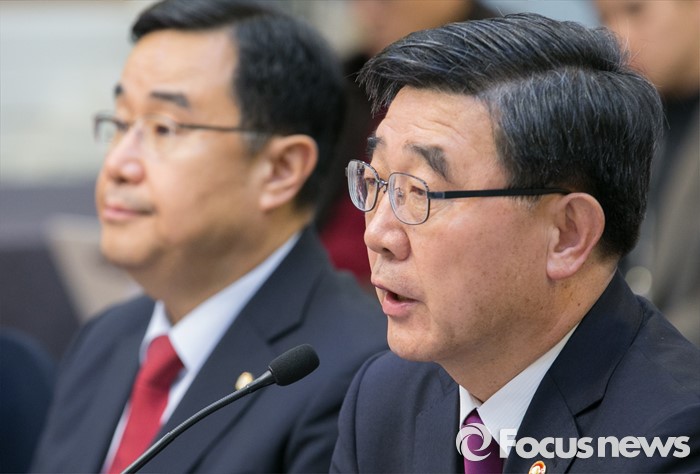 (서울=포커스뉴스) 9일 오전 서울 여의도 국회 귀빈식당에서 열린 경제활성화를 위한 민·당·정 간담회에 참석한 이기권 고용노동부 장관이 발언하고 있다. 왼쪽은 김정훈 새누리당 정책위의장.