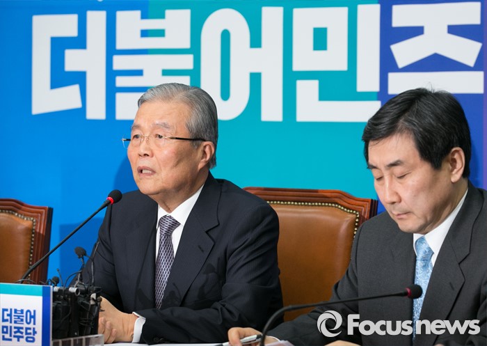 (서울=포커스뉴스) 김종인 더불어민주당 비대위 대표가 9일 오전 서울 여의도 국회에서 열린 비상대책위원회의에 참석해 모두발언을 하고 있다. 오른쪽은 이종걸 원내대표.