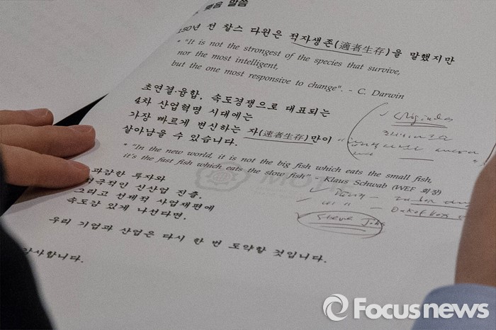 (서울=포커스뉴스) 9일 오전 서울 중구 롯데호텔에서 열린 '주요 투자기업 간담회'에서 산업 정책관이 자료에 메모를 하고 있다.이날 주 장관은 30대 그룹 123조 투자계획이 차질없이 이행되도록 밀착 지원하겠다고 밝혔다.