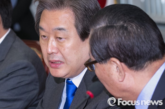 (서울=포커스뉴스) 김무성(왼쪽) 새누리당 대표와 서청원 최고위원이 9일 오전 서울 여의도 국회에서 열린 최고중진연석회의에 참석해 대화하고 있다.
