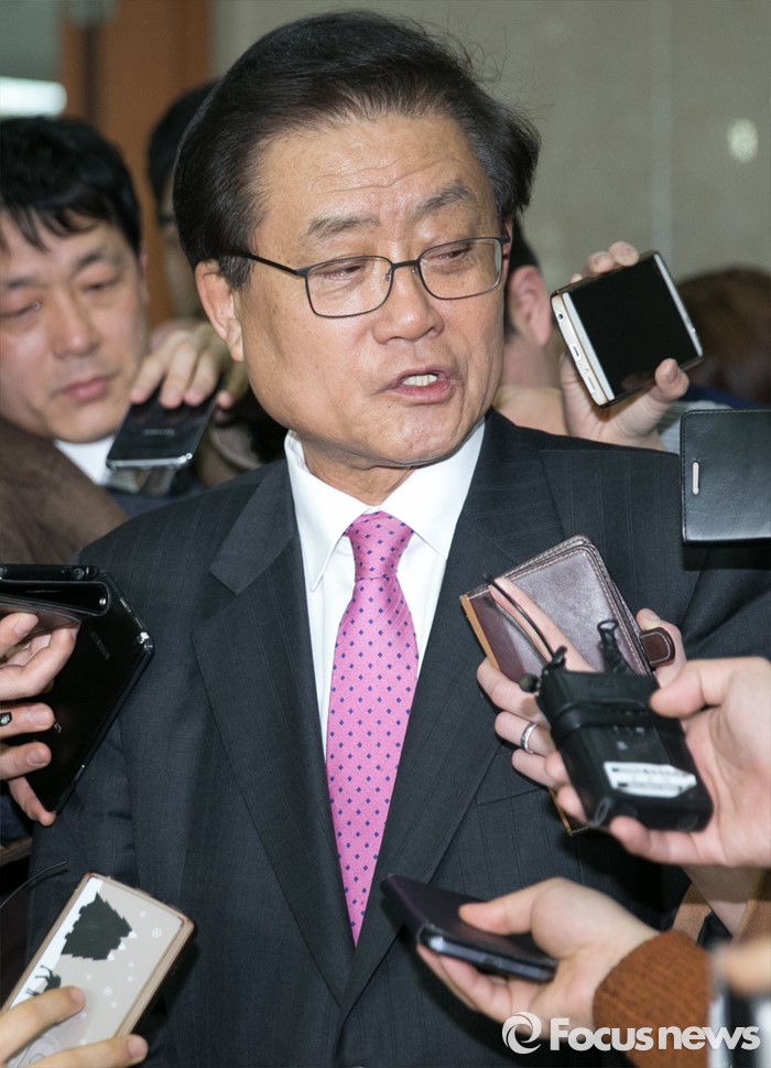 (서울=포커스뉴스) 새누리당 현역 의원 중 공천배제 통보를 받은 김태환 의원이 9일 오후 서울 여의도 국회 정론관에서 탈당 및 20대 총선 무소속 출마 기자회견을 마친 뒤 취재진 질문에 답하고 있다.