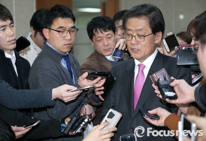 (서울=포커스뉴스) 새누리당 현역 의원 중 공천배제 통보를 받은 김태환 의원이 9일 오후 서울 여의도 국회 정론관에서 탈당 및 20대 총선 무소속 출마 기자회견을 마친 뒤 취재진 질문에 답하고 있다.