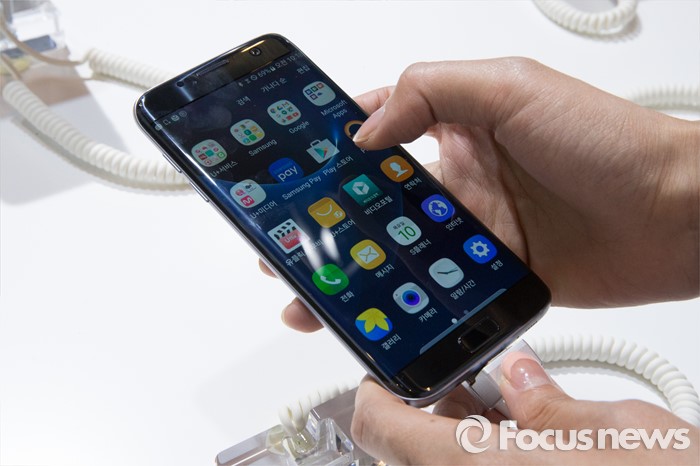 (서울=포커스뉴스) 10일 오전 서울 중구 신라호텔에서 삼성전자의 스마트폰 갤럭시 S7 엣지을 모델이 체험하고 있다. 이번 제품은 듀얼 픽셀과 F1.7 조리개 탑재, 방수·방진과 대용량 배터리가 탑재되어 있다.
