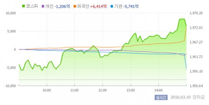 이날 코스피는 전일대비 0.30% 오른 1958.87에 장을 시작했다. 이후 지수는 상승폭을 키우며 장중 한때 1970선까지 오르기도 했다.