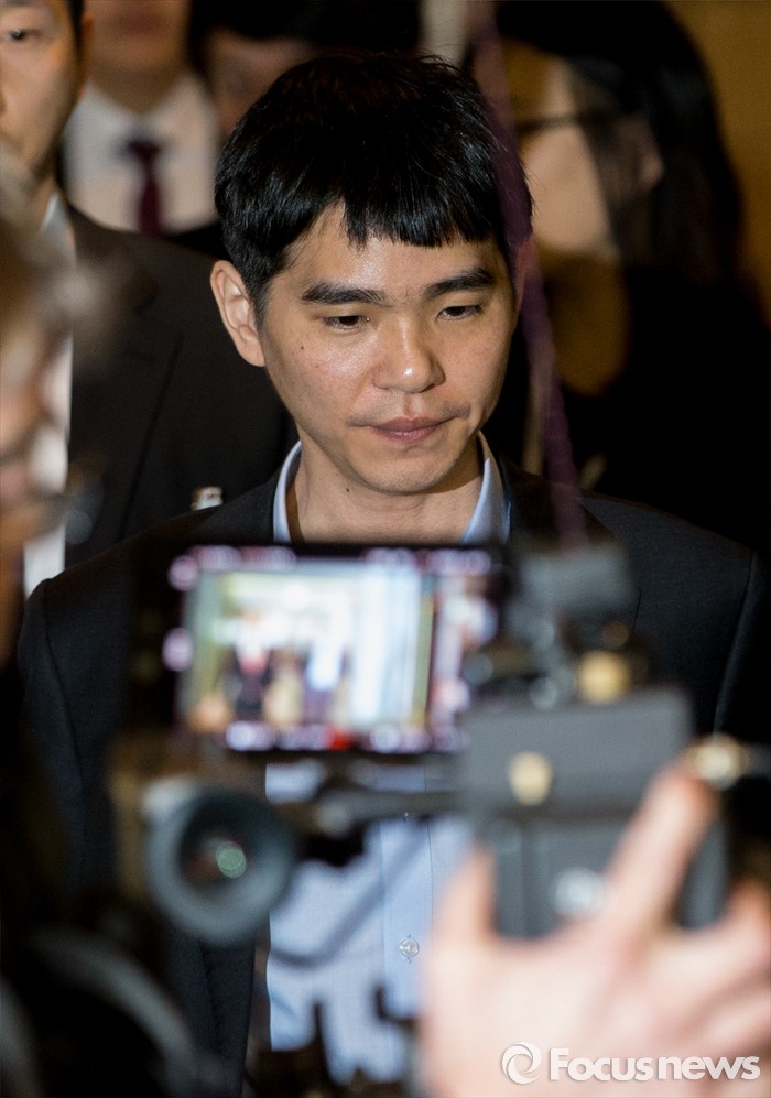 (서울=포커스뉴스) 프로바둑기사 이세돌 9단이 10일 오후 서울 종로구 포시즌스 호텔에서 열린 '구글딥마인드 챌린지 매치' 인공지능 '알파고'와의 제2국에 불계패를 당한 뒤 기자회견장으로 이동하고 있다.