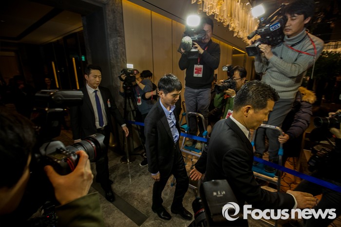 (서울=포커스뉴스) 프로바둑기사 이세돌 9단이 10일 오후 서울 종로구 포시즌스 호텔에서 열린 '구글딥마인드 챌린지 매치' 인공지능 '알파고'와의 제2국에 불계패를 당한 뒤 기자회견장으로 이동하고 있다.
