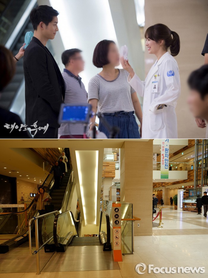 유시진과 강모연이 처음 만난 해성병원은 서울 서초구 반포동 가톨릭대학교 서울성모병원이다. 서울 여러 병원 중 위치와 규모가 드라마 분위기에 적합하다는 판단에서 섭외됐다. 드라마 '태양의 후예' 장소 섭외를 담당한 윤종훈 로케이션 매니저는 "병원이란 곳은 다른 장소보다 조심할 수밖에 없는 곳이다. 섭외가 힘든 장소 중 하나다. 다행히 과거 드라마 '굿닥터'를 촬영한 인연이 있어 섭외가 수월했다"고 뒷이야기를 전했다.