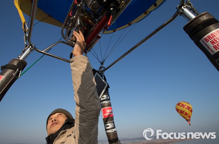 (논산=포커스뉴스) 12일 오전 충남 논산 강경읍 수변공원 일대에서 열린 2015-2016시즌 코리아열기구그랑프리 5차전 ‘오프로드컵’에서 대회에 출전한 선수들이 공중 레이스를 펼치고 있다.