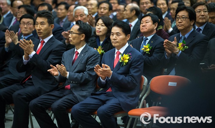 (서울=포커스뉴스) 김병원 농협 신임 회장이 14일 오전 서울 중구 농협 중앙회에서 열린 신임 회장 취임식에 참석, 행사 중 박수를 치고 있다.