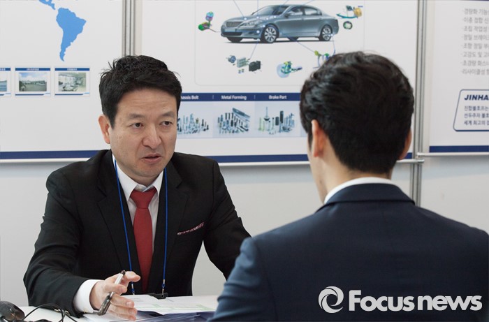(대전=포커스뉴스) 14일 오전 대전시청에서 열린 청년희망로드쇼 대전·충남권 우수기업 채용박람회에서 구직자가 면접을 보고 있다.