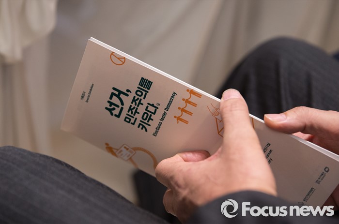 (서울=포커스뉴스) 14일 오후 서울 종로구 대한민국역사박물관에서 열린 대한민국 선거의 역사 '선거, 민주주의를 키우다.' 특별전시회 개막식에서 한 참석자가 전시 도록을 쥐고 있다.