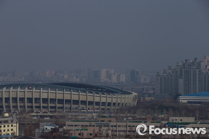 (서울=포커스뉴스) 서울 한 낮 기온이 11도까지 상승한 14일 오후 서울 강남구에서 바라본 도심에 보통 수준의 미세먼지가 끼어 있다.