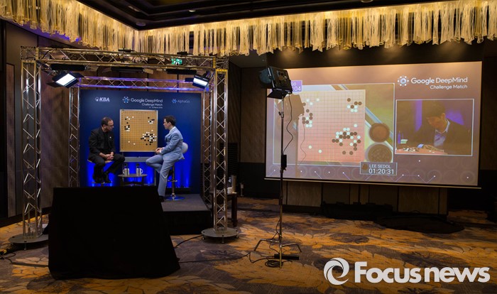 (서울=포커스뉴스) 외국 해설자들이 15일 오후 서울 종로구 포시즌스호텔에서 구글 딥마인드 챌린지 매치, 인공지능 바둑프로그램 알파고와의 다섯번째 대국을 해설하고 있다.