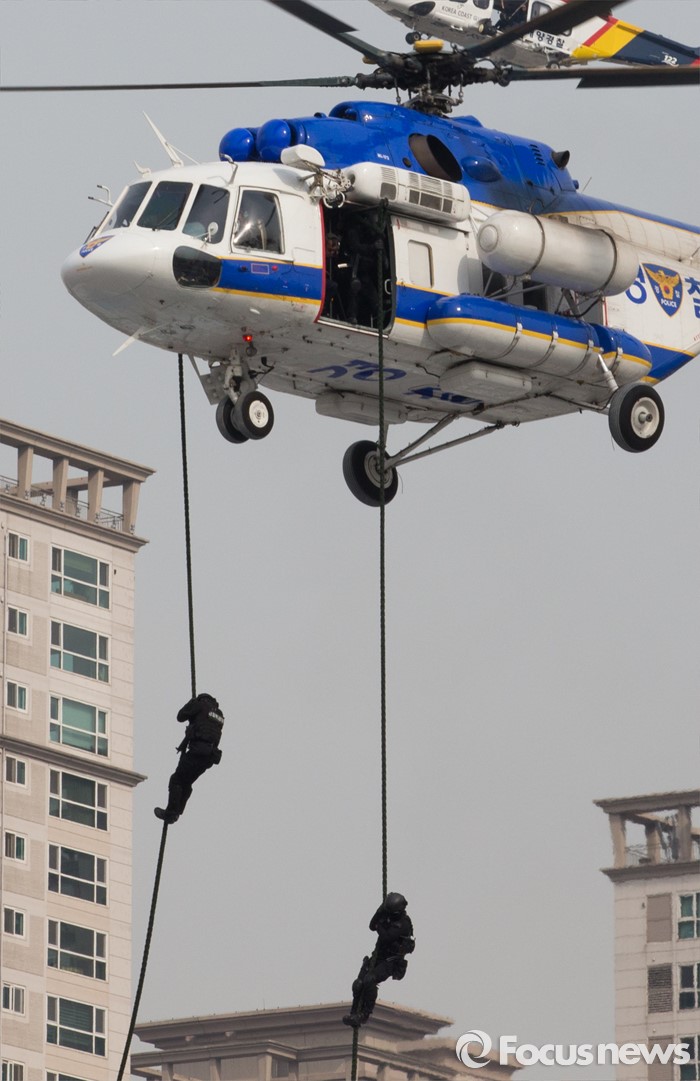 하강하는 경찰특공대원들