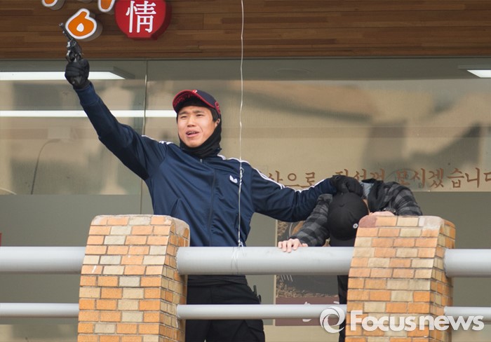(서울=포커스뉴스) 15일 오후 서울 서초구 고속터미널 광장에서 훈련 참가자들이 시민안전확보를 위한 유관기관 합동 대테러 종합훈련을 하고 있다.