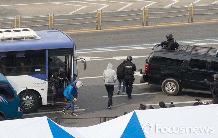 (서울=포커스뉴스) 15일 오후 서울 서초구 고속터미널 광장에서 훈련 참가자들이 시민안전확보를 위한 유관기관 합동 대테러 종합훈련을 하고 있다.