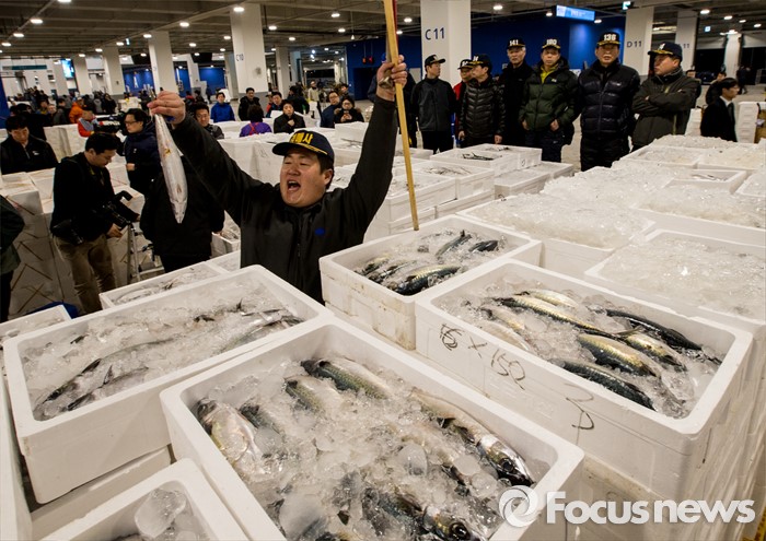 (서울=포커스뉴스) 16일 오전 서울 노량진 수산시장 현대화 건물 경매장에서 첫 경매가 열리고 있다. 이날 경매를 시작으로 현대화 건물에서의 개장이 이뤄졌지만, 절반 넘는 상인들이 좁아진 상가 공간과 비싸진 임대료를 주장하며 옛 건물에 남은 채 이전을 거부 중인 상황이다.
