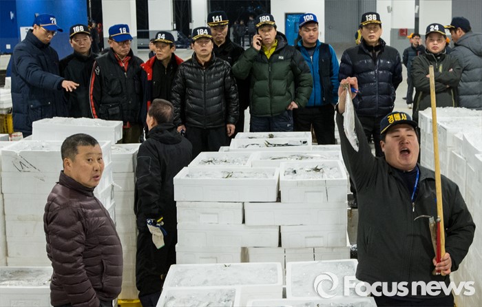 (서울=포커스뉴스) 16일 오전 서울 노량진 수산시장 현대화 건물 경매장에서 첫 경매가 열리고 있다. 이날 경매를 시작으로 현대화 건물에서의 개장이 이뤄졌지만, 절반 넘는 상인들이 좁아진 상가 공간과 비싸진 임대료를 주장하며 옛 건물에 남은 채 이전을 거부 중인 상황이다.
