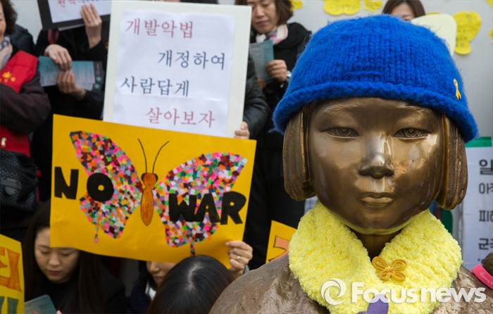(서울=포커스뉴스) 16일 오후 서울 종로구 옛 일본 대사관 앞에서 '일본군 위안부 문제해결을 위한 1222차 정기 수요집회'가 열리고 있다.