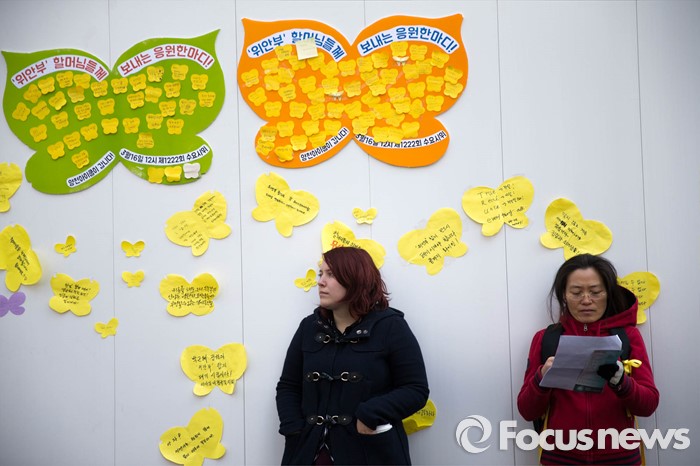 (서울=포커스뉴스) 16일 오후 서울 종로구 옛 일본 대사관 앞에서 열린 제 1222차 정기 수요집회에서 한 외국인이 가던 길을 멈추고 수요집회를 바라보고 있다.