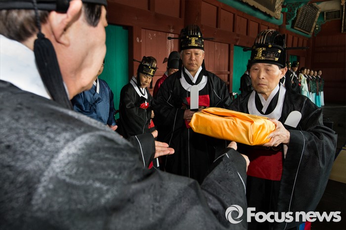 (서울=포커스뉴스) 16일 오전 서울 종로구 성균관 대성전에서 '2016 춘기석전대제'가 봉행되고 있다.
