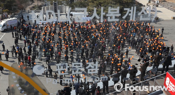 (파주=포커스뉴스) 16일 오후 경기도 파주시 임진각 망배단에서 개성공단 입주기업, 영업기업, 협력기업 등 대표를 비롯한 임직원과 가족들이 '개성공단 평화대행진 집회'를 하고 있다.