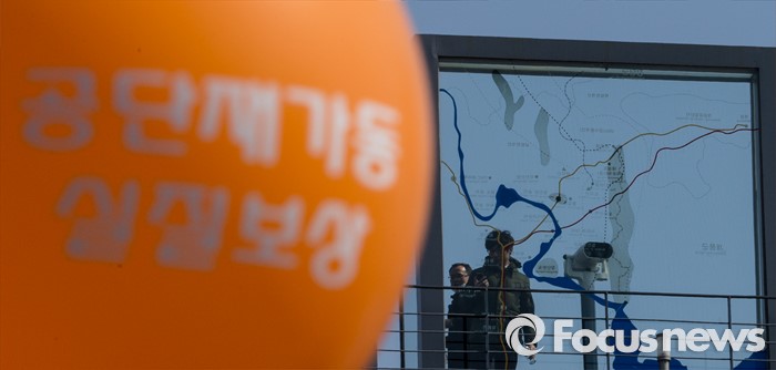 (파주=포커스뉴스) 16일 오후 경기도 파주시 임진각 망배단에서 개성공단 입주기업, 영업기업, 협력기업 등 대표를 비롯한 임직원과 가족들이 '개성공단 평화대행진 집회'를 하고 있다.