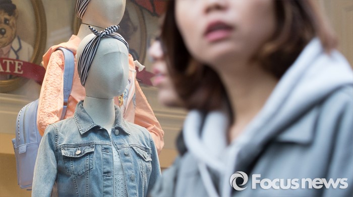 (서울=포커스뉴스) 17일 오전 서울 중구 명동 거리의 쇼윈도우에 봄맞이 옷들이 전시돼 있다.