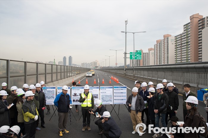 (서울=포커스뉴스) 박원순 서울시장이 17일 오전 서울 내부순환로 정릉천 고가에서 취재진의 질문에 답변을 하고 있다.