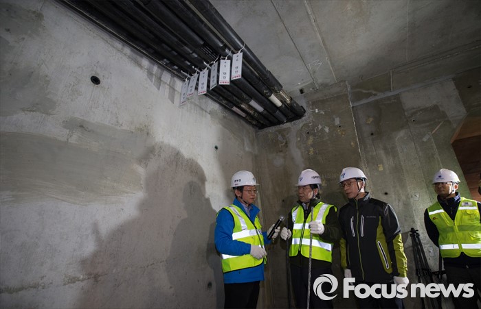 (서울=포커스뉴스) 박원순 서울시장이 17일 오전 통행재개를 앞둔 서울 내부순환로를 점검하기 위해 정릉천고가 교량 상부구조물 내부에서 시설관리공단 관계자와 함께 일부 교체를 마친을 텐던 및 부품을 살펴보고 있다.