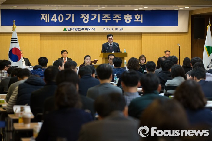 LG전자도 속전속결로 주총을 마쳤다. 주주들도 별다른 의견 없이 20여분 만에 주총을 끝내고 집으로 직행했다. 돌아가는 길에도 불만의 목소리를 내는 주주들은 보이지 않았다.(서울=포커스뉴스) 이백훈 현대상선 대표이사가 18일 오전 서울 종로구 현대그룹빌딩에서 열린 제40기 정기주주총회에서 주주들의 말을 듣고 있다. 2016.03.18 허란 기자