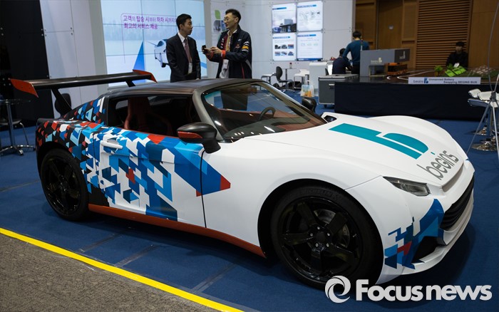 (제주=포커스뉴스) 18일 오전 제주 서귀포 제주국제컨벤션센터에서 열리고 있는 2016 국제전기자동차엑스포에 전기 스포츠카가 전시 되어 있다.