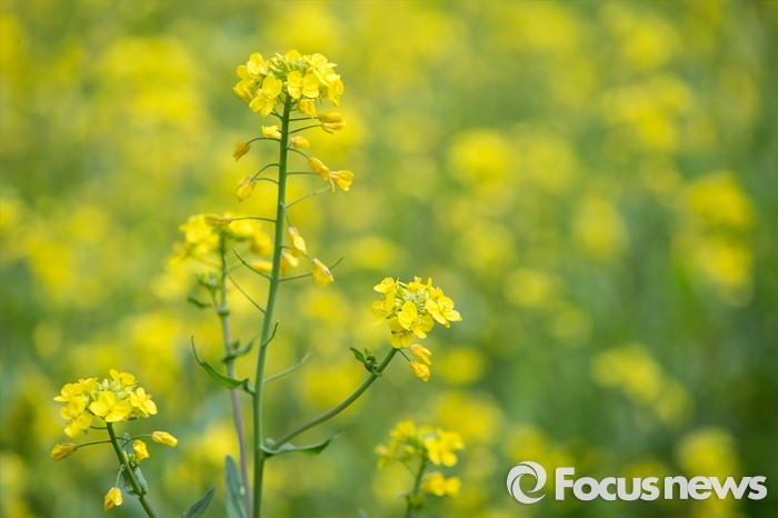 (제주=포커스뉴스)19일 오전 제주 서귀포 중문관광단지 일원에서 제18회 서귀포 유채꽃 국제걷기대회가 열리고 있는 가운데 만개한 유채꽃이 보이고 있다.