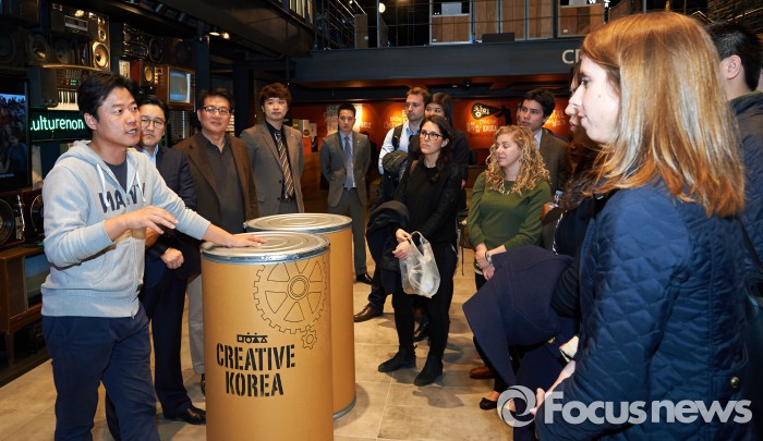 CJ그룹 관계자는 “학생들은 20년 전 불모지에 가까웠던 문화산업에 진출해 한류의 토대를 닦고 이제는 문화산업의 본고장인 미국을 비롯한 전 세계로 K-Culture를 확산하고 있는 CJ의 노력을 인정받았다”고 말했다.하버드경영대학원 학생들이 3월18일 오후 서울 상암동 CJ E&M센터를 방문해 (왼쪽부터)나영석PD, 서현동 글로벌사업담당 상무, 이상길 전략기획실 부사장을 만나 K-콘텐츠의 경쟁력과 글로벌 진출 전략에 대해 질문하고 있다.