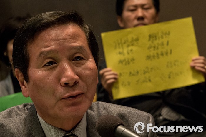 (서울=포커스뉴스) 정기섭 개성공단기업협회 회장이 21일 오전 서울 중구 프레스센터 국제회의장에서 열린 '제1차 한반도평화회의'에 참석해 발언 하고 있다.
