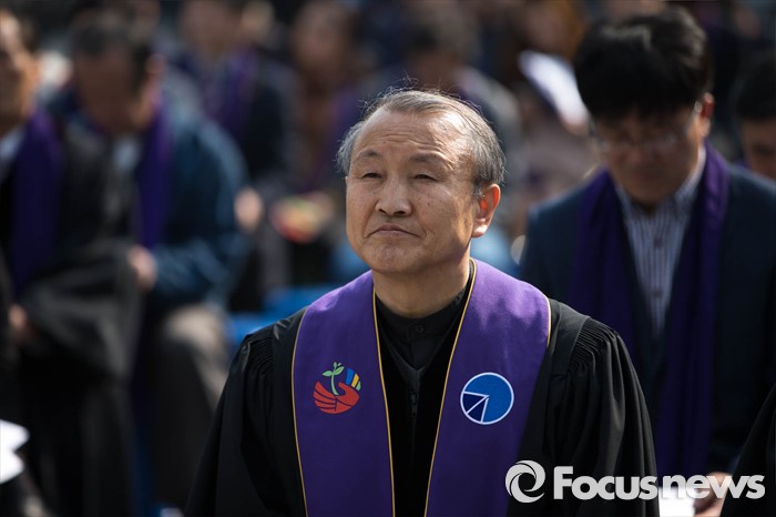 (서울=포커스뉴스) 21일 오후 서울 중구 덕수궁 대한문 앞에서 한국기독교 장로회 총회 '고난당하는 민주주의를 위한 시국기도회'가 열리고 있다.