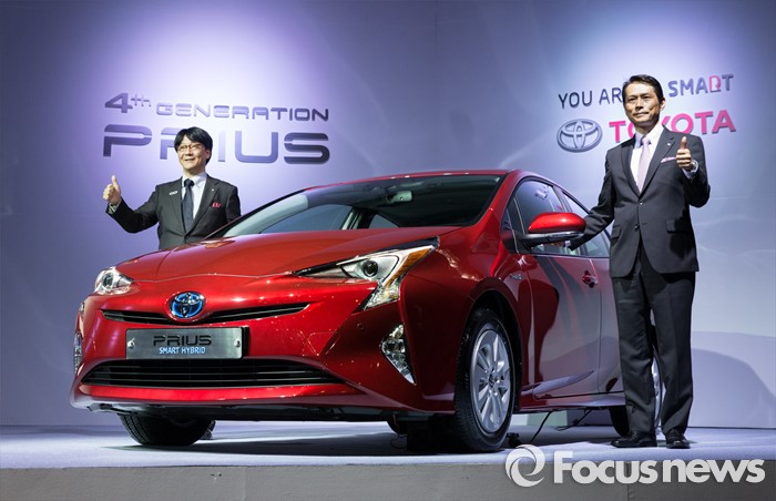 (서울=포커스뉴스) 22일 오전 서울 중구 웨스틴 조선호텔에서 요시다 아키히사(오른쪽) 한국토요타 사장과 토요시마 코지 프리우스 수석 엔지니어 신형 4세대 프리우스를 선보이고 있다.