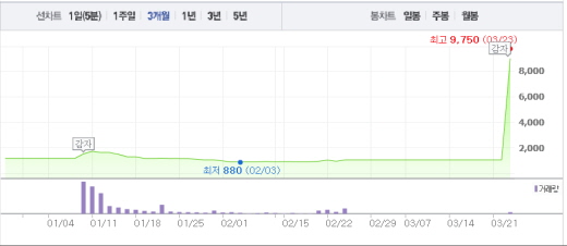 지엠피는 오전 9시25분 현재 전일 대비 12.78%(1020원) 오른 9000원에 거래 중이다.