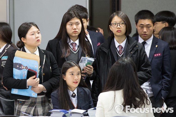 (고양=포커스뉴스) 23일 오후 경기도 고양시 킨텍스 제2전시장에서 열린 2016 대한민국 고졸인재 잡 콘서트(Job Concert)에서 학생들이 상담을 받고 있다.
