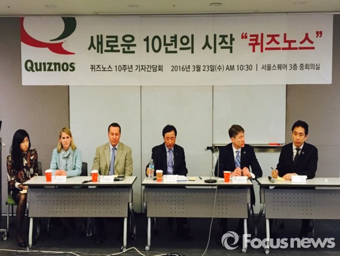 퀴즈노스는 23일 오전 서울스퀘어에서 기자간담회를 열고, 현재 40개인 한국매장을 2018년까지 100개로 늘린다고 밝혔다. 또한 한국 시장에서의 경험을 발판삼아 10년 안에 중국에서는 1500개 매장을 낼 계획이다.