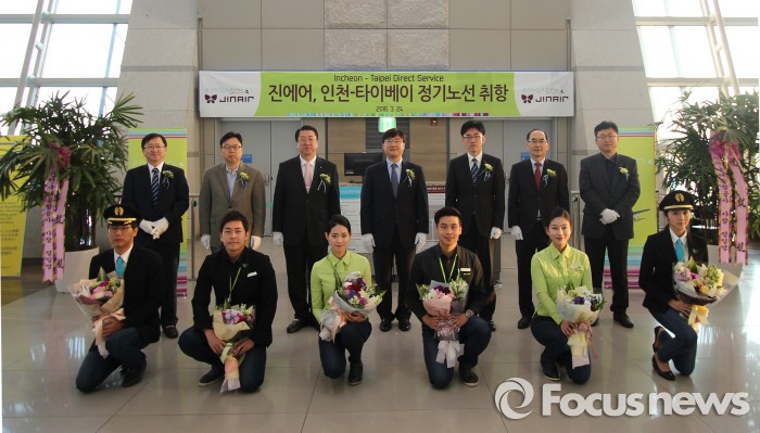(서울=포커스뉴스) 진에어는 이날 오전 인천국제공항에서 인천-타이베이 신규 노선 취항 행사를 열고 주7회 운항을 시작했다고 24일 밝혔다.