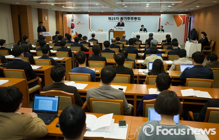 임영록 전 KB금융회장은 'KB금융사태'로 논란을 빚은 바 있다. 또 두산그룹 오너 일가의 박용오, 박용성, 박용현, 박용만 형제와 같은 경기고 출신인 임 사외이사 후보는 오너일가와 고교 동문이라 사외이사로서 독립성 결여가 우려된다는 지적을 받고 있다.(서울=포커스뉴스) 조대식 사장이 18일 오전 서울 중구 SK본사에서 열린 제 25차 정기 주주총회에서 의장을 맡아 인사말을 하고 있다. 이번 주총에서 최태원 SK그룹 회장의 등기이사 선임안건이 가결됐다. 2016.03.18 허란 기자