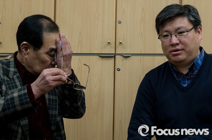 (서울=포커스뉴스) 지난 1983년 7살의 나이에 스웨덴으로 입양을 갔던 김세진(Daniel sei jin Magnusson·41) 씨가 경찰의 도움으로 가족을 찾았다. 24일 오전 서울 남대문경찰서 민원실에서 김 씨의 생부 김용환(75)씨가 아들과 대화 도중 눈물을 훔치고 있다. 김 씨는 한국의 가족을 찾기 위해 지난 3월 16일남대문경찰서 민원실을 찾았고, 경찰은 김 씨가 가지고 온 재적등본, 친권포기각서 등의 자료를 바탕으로 친부와 누나들을 찾았다.