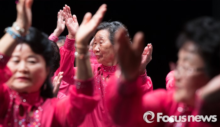(공주=포커스뉴스) 25일 오후 충남 공주 공주문예회관에서 열린 2016 공주시 어르신건강체조 경연대회에서 참가자들이 준비한 공연을 선보이고 있다.