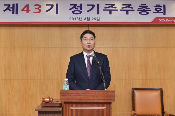 이날 주총에서 광동제약은 매출 5723억원, 영업이익 487억원, 당기순이익 334억원 등 2015년 영업실적을 보고했으며 제43기 재무제표 및 연결재무제표 승인과 주당 80원의 현금 배당이 승인됐다.