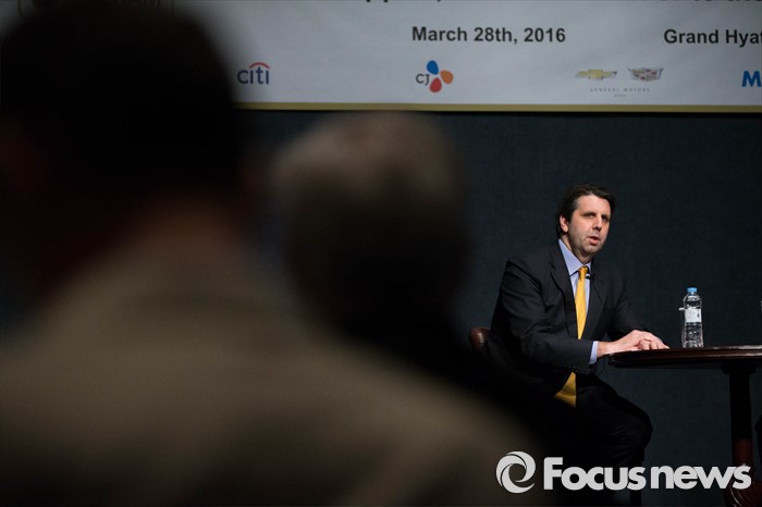 (서울=포커스뉴스) 마크 리퍼트 주한미국대사가 28일 오전 서울 용산구 그랜드하얏트 호텔에서 열린 '주한미국대사와의 오찬 간담회'에 참석, 사회자의 질문에 답변을 하고 있다.