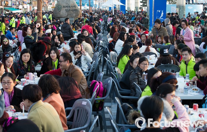 (인천=포커스뉴스) 28일 오후 인천 중구 월미 문화의 거리에서 중국 아오란 그룹 임직원 4500명이 치맥파티를 즐기고 있다.